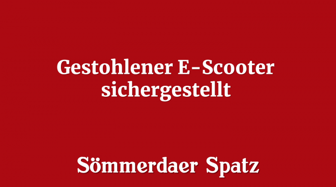 Elxleben. Montagmittag (02:02.2026) haben Polizisten im Landkreis Sömmerda einen gestohlenen E-Scooter sichergestellt. Ein 43-jähriger Mann war gegen 12:30 Uhr mit dem Scooter in der Thomas-Müntzer Straße in Elxleben unterwegs gewesen, als er in eine Verkehrskontrolle geriet. Dabei stellten die Beamten fest, dass der Roller im Dezember 2025 in Erfurt gestohlen und folglich zur Fahndung ausgeschrieben war. Die Polizisten stellten den E-Scooter sicher und leiteten ein Verfahren wegen Hehlerei gegen den polizeibekannten Mann ein. (SO)